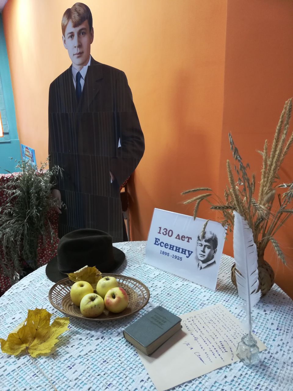 Совместно с районной библиотекой для детей и юношества была организована выставка книг, на которой представлены сборники стихов поэта, книги с описанием его биографии, этюды-раздумья о поэте, воспоминания родных. Наши кружковцы, их родители и гости Дворца могут ознакомиться с творчеством Сергея Есенина в течение октября.