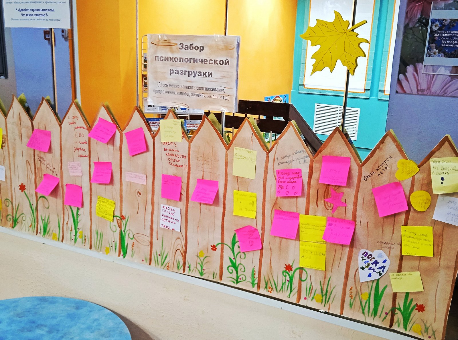 На «Заборе психологической разгрузки» ребята могли писать всё то, что накипело у них на сердце. Кто-то устал от школы, кому-то досаждают девчонки из класса, кого-то волнует здоровье бабушки, кто-то мечтает о собаке….