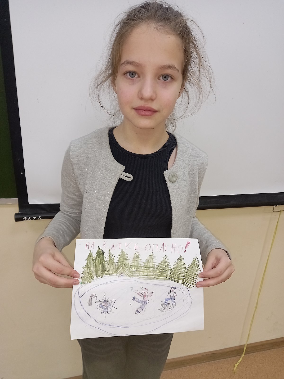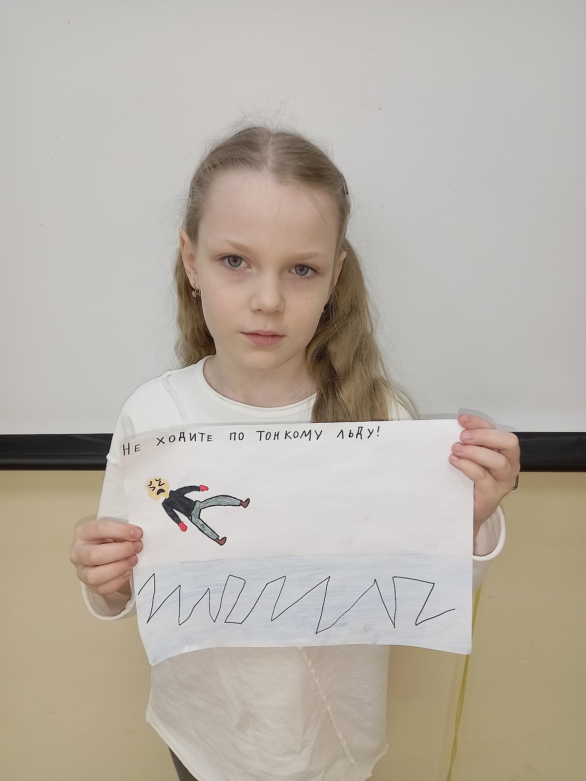 В рамках акции "Осторожно, тонкий лёд!" в коллективе "Юный художник" третьего года обучения, работающем на базе Новопоселковской школы, педагог Ширяева Н.А. провела с детьми беседу на тему: " Как опасен тонкий лёд".