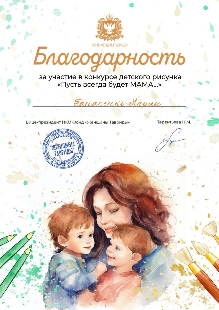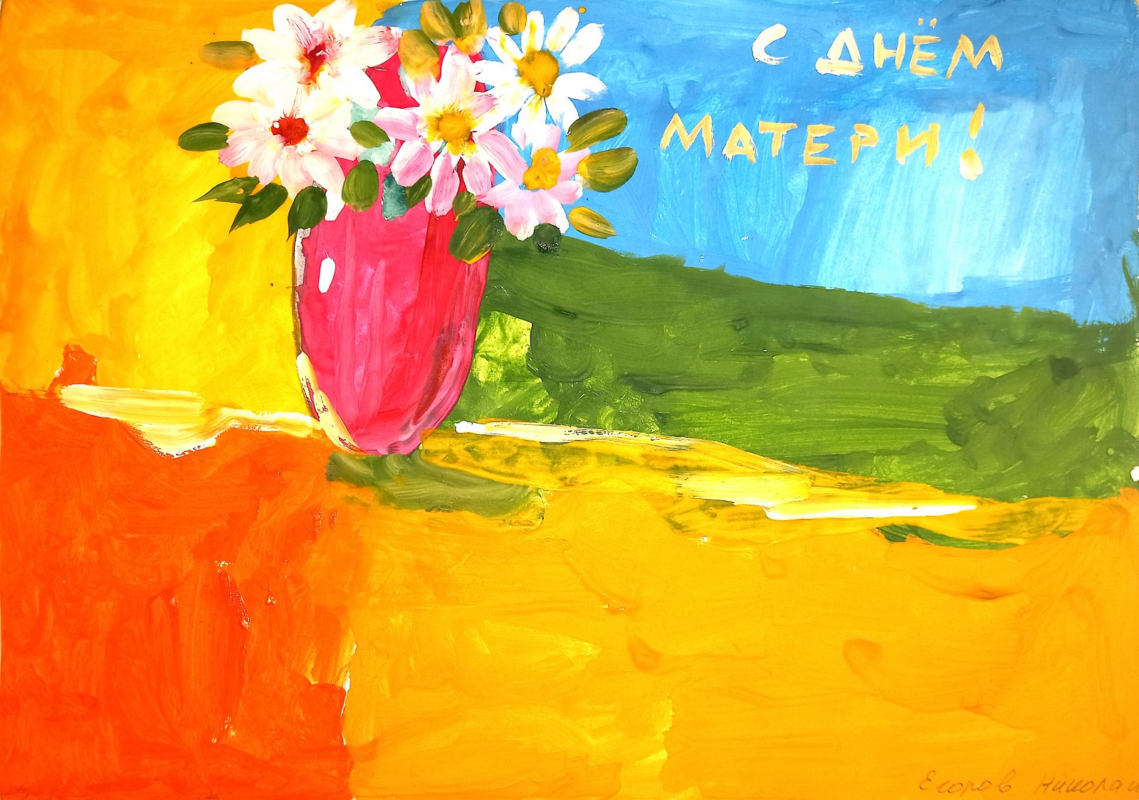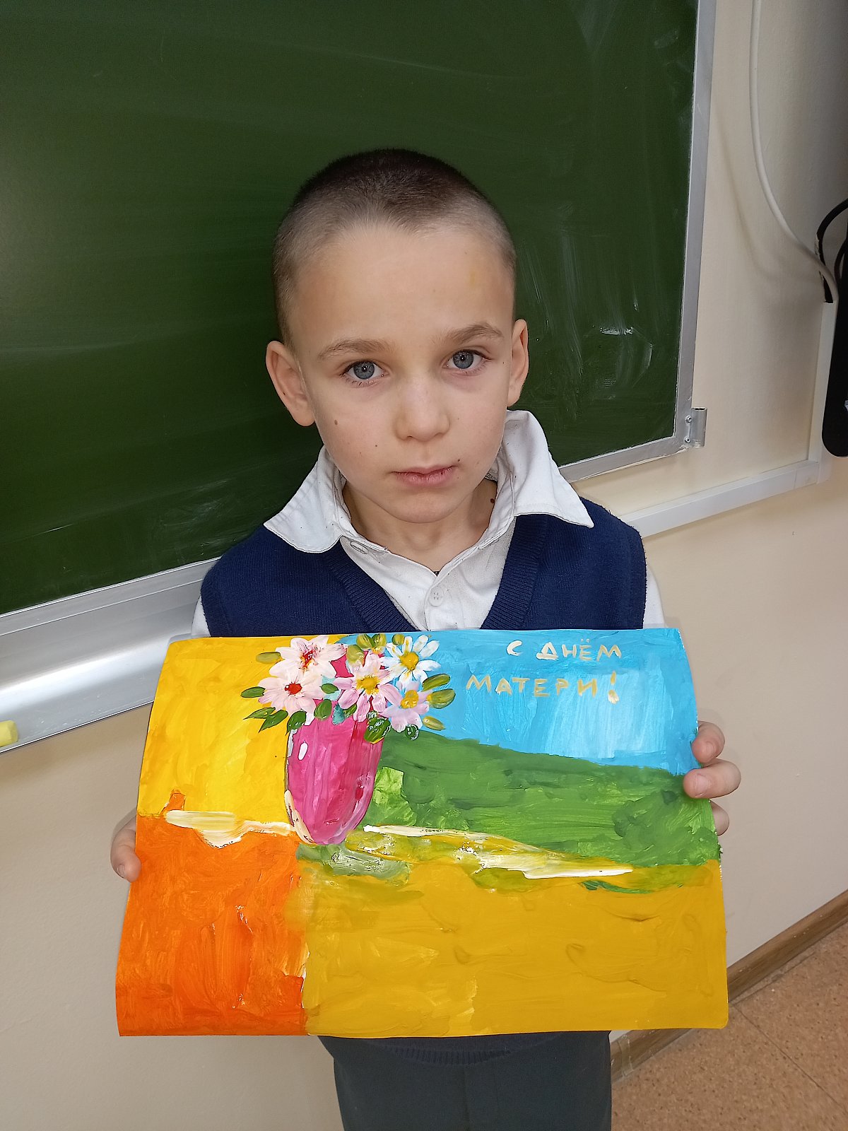 Работы Панасенко Марии "Мама любимая, мама моя" (портрет) и Егорова Николая "Букет для любимой мамы" (натюрморт) получили благодарности за участие.