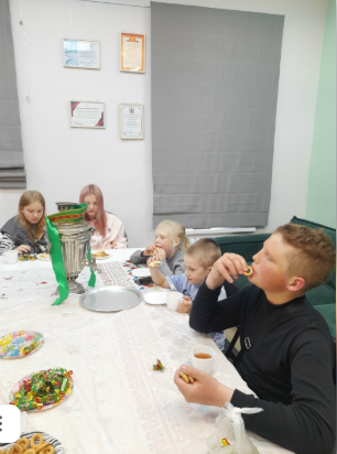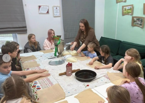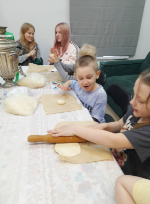 Готовые пирожки поставили выпекаться, а пока пирожки выпекались, дети слушали сказки народов России, которые читала детям Екатерина Алексеевна.