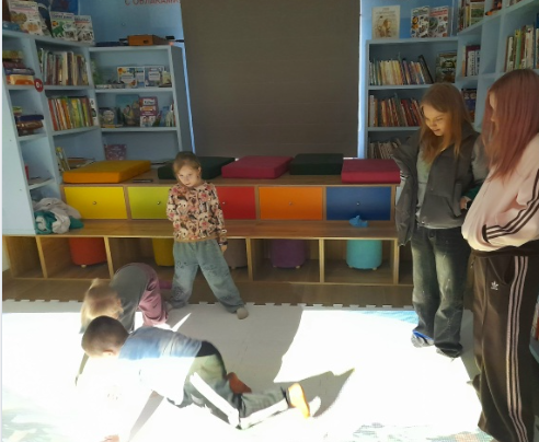 Снежанна Свиридонова ( ученица 8 А класса) и Дарья Артемьева (ученица 7 Б класса) поиграли с кружковцами в интерактивные игры, объяснив детям, что нужно быть дружными, уметь уступать и не ругаться.