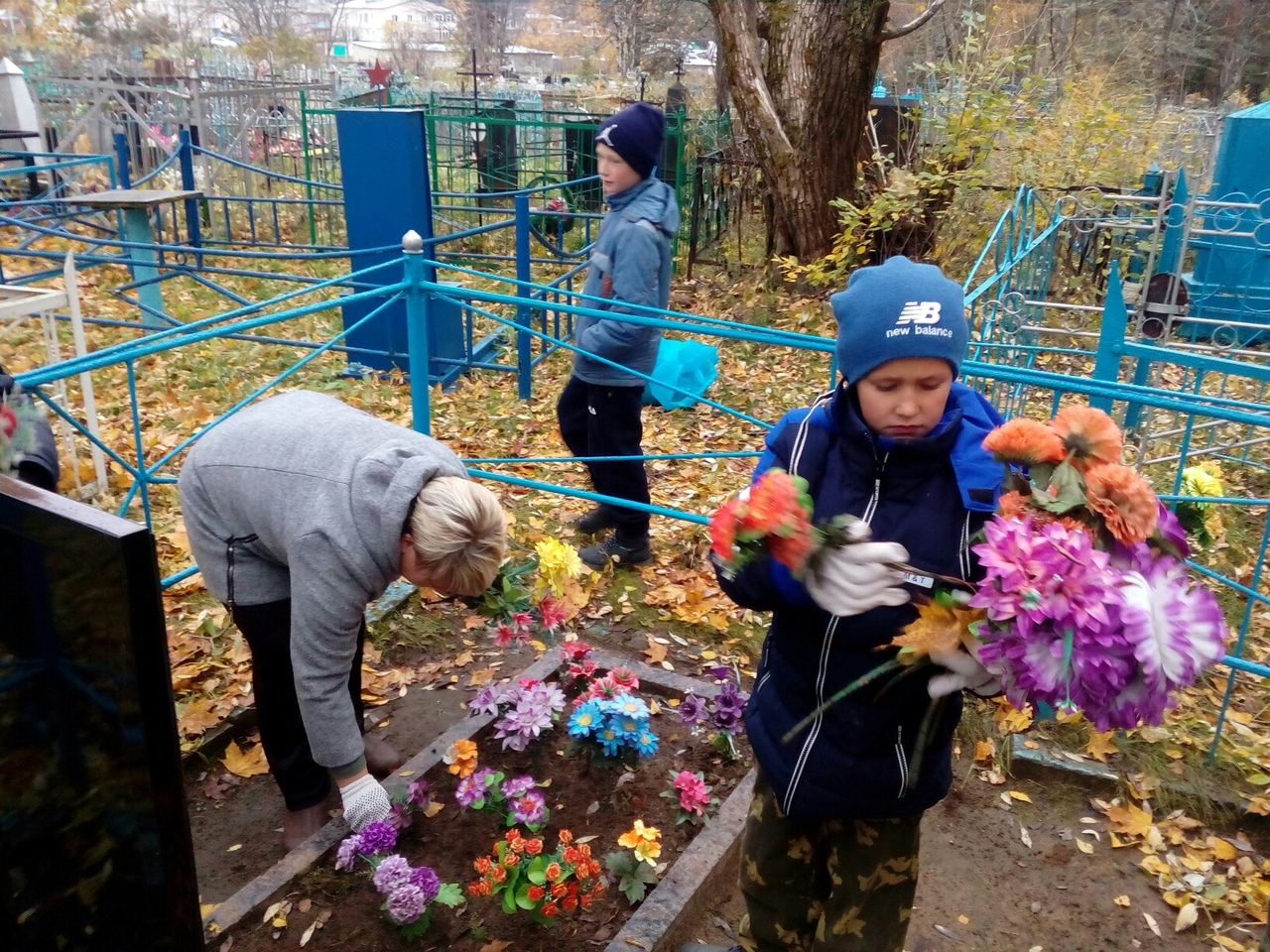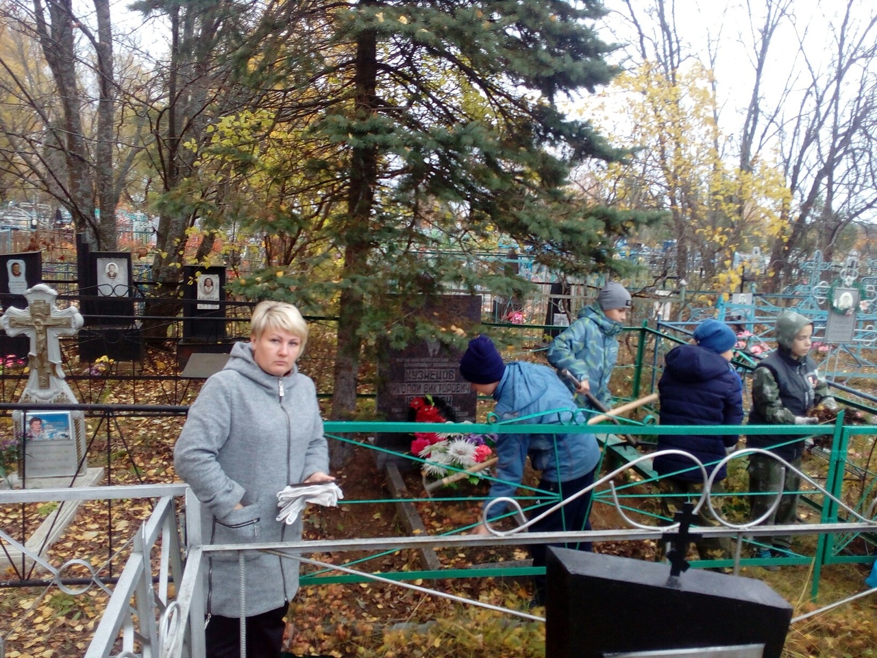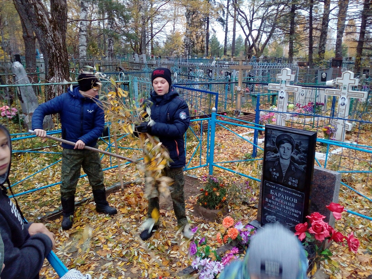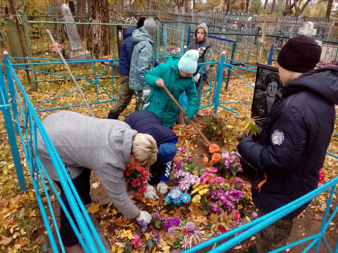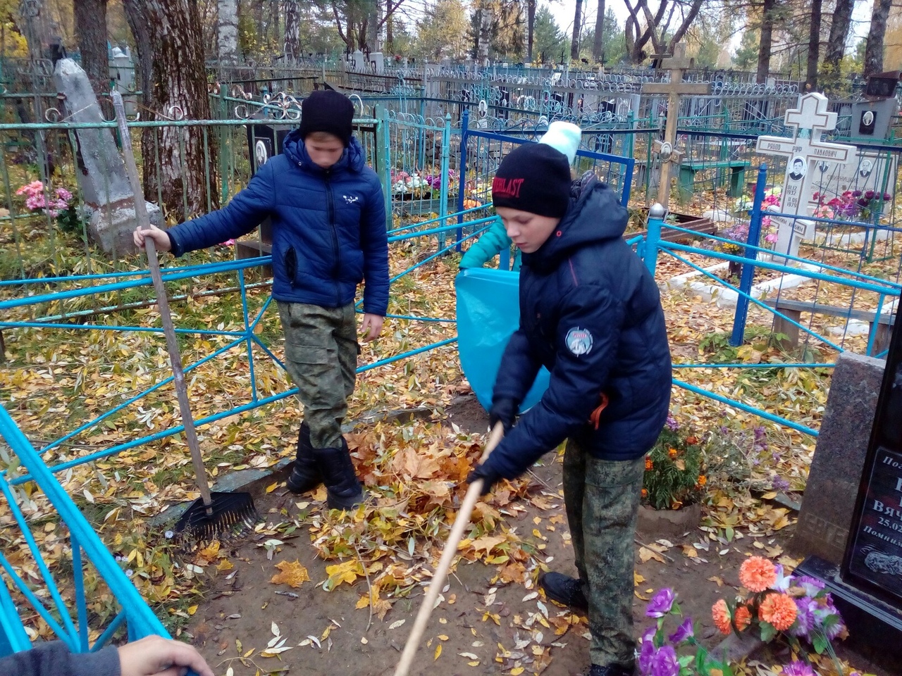 Ребята собрали опавшую листву и ветки, проверили состояние памятников и оград.