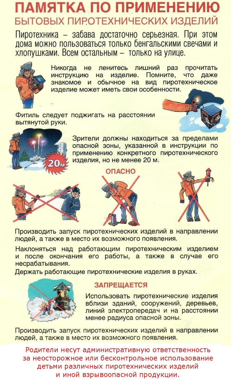 - категорически запрещается несовершеннолетним пользоваться пиротехническими изделиями.