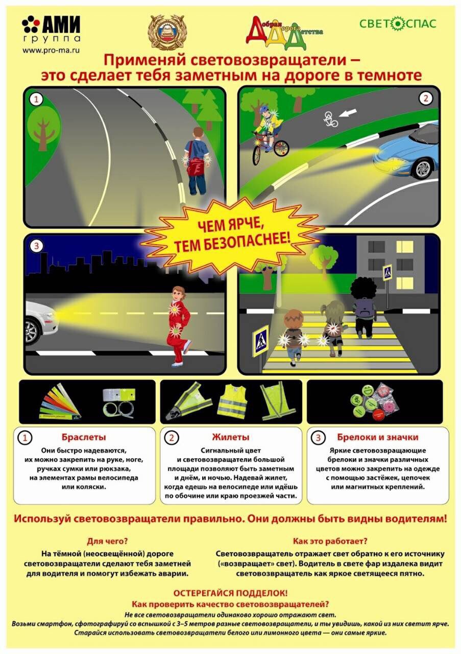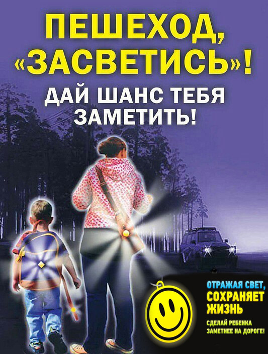 В связи с коротким световым днём для безопасности ваших детей на дорогах просьба обеспечить их светоотражающими элементами.